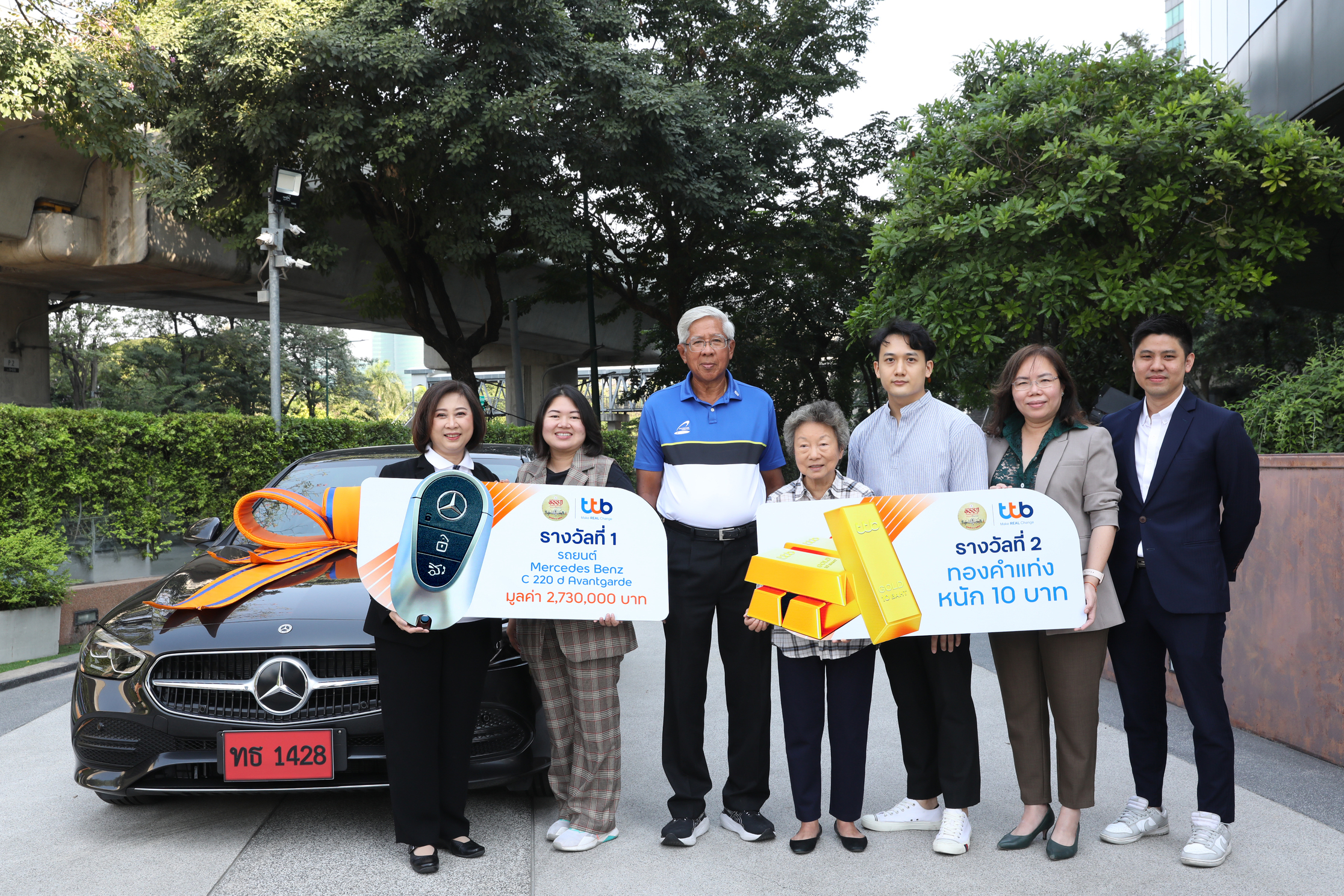 ทีเอ็มบีธนชาต โดย นางประภาศิริ โฆษิตธนากร ประธานเจ้าหน้าที่บริหารด้านทรัพยากรบุคคล (ซ้ายสุด) ร่วมมอบรางวัลและแสดงความยินดีแก่ผู้โชคดีจากการซื้อสลากบำรุงสภากาชาดไทย ประจำปี 2566 รายได้โดยเสด็จพระราชกุศลบำรุงสภากาชาดไทย เพื่อนำไปช่วยเหลือสังคมและสาธารณกุศลต่อไป ซึ่งผู้โชคดีที่ได้รับรางวัลใหญ่ รถยนต์เมอร์เซเดส-เบนซ์ รุ่น C 220 d Av ได้แก่ นางสาวอโนชา เสนาะ (ที่ 2 จากซ้าย) และผู้ที่ได้รับรางวัลทองคำแท่งหนัก 10 บาท จำนวน 5 รางวัล ได้แก่ นายสมภพ อินทรประสงค์, นายกิตติ จรัสรัตน์วัฒนา, นางสาวนพมาศ วัฒนเลี้ยงใจ และนายศรัณย์ ศิริภัทรประวัติ (ตามลำดับที่ 3 จากซ้าย) นอกจากนี้ ธนาคารยังได้มอบของรางวัลให้กับผู้โชคดีท่านอื่น ๆ ที่ร่วมเป็นส่วนหนึ่งของ “การให้” ผ่านสาขาธนาคารทั่วประเทศ ได้แก่ สร้อยคอทองคำหนัก 0.25 บาท จำนวน 50 รางวัล และทองแท่งน้ำหนัก 0.125 บาท จำนวน 660 รางวัล รวม 716 รางวัล รวมมูลค่ากว่า 7 ล้านบาท ณ ทีทีบี สำนักงานใหญ่