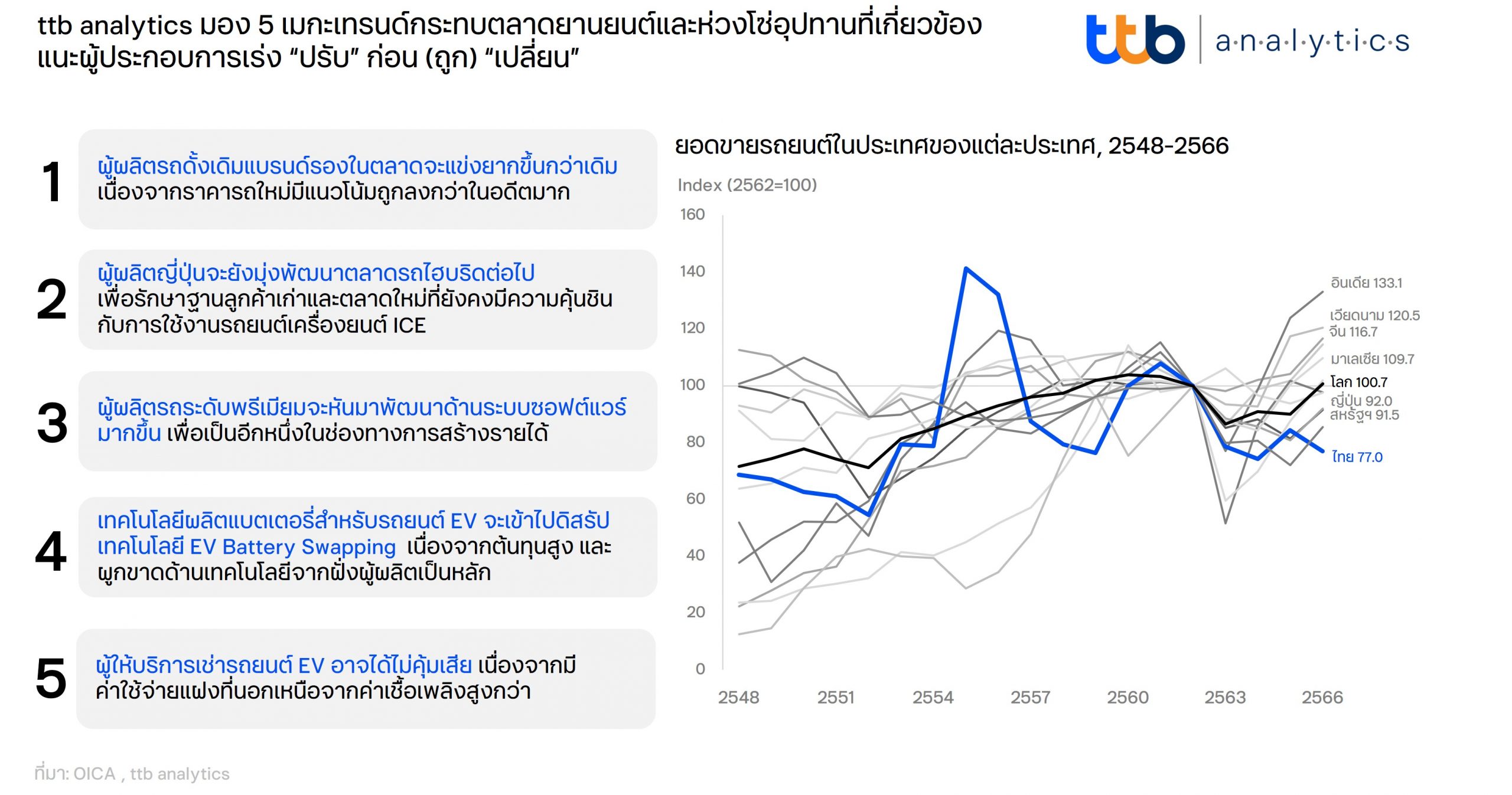 ทีทีบี มอง 5 เมกะเทรนด์กระทบตลาดยานยนต์และห่วงโซ่อุปทานที่เกี่ยวข้อง แนะผู้ประกอบการเร่ง “ปรับ” ก่อน (ถูก) “เปลี่ยน”