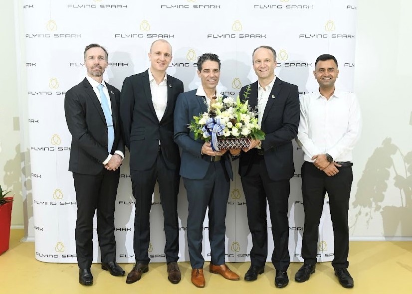 บริษัท ไทยยูเนี่ยน กรุ๊ป จำกัด (มหาชน) นำโดยนายลูโดวิค การ์นิเยร์ ประธานเจ้าหน้าที่ด้านการเงินกลุ่มบริษัท (คนที่ 2 จากขวา), นายพอล เฮอร์โฮลซ ผู้อำนวยการกลุ่มงานด้านการพัฒนาธุรกิจกลยุทธ์ (คนที่ 2 จากซ้าย), ดร.แมคนัส ฮานส์ เบิร์กควิสธ์ รองผู้จัดการทั่วไป ฝ่ายนวัตกรรมกลุ่มองค์กร (คนแรกจากซ้าย) ร่วมแสดงความยินดีกับ นายอีราน โกรนิช ผู้ก่อตั้งและประธานกรรมการบริหาร บริษัท ฟลายอิ้ง สปาร์ค (ประเทศไทย) จำกัด (คนกลาง) พันธมิตรทางธุรกิจที่ไทยยูเนี่ยนเข้าลงทุนเชิงกลยุทธ์ ในโอกาสเปิดโรงงานฟลายอิ้ง สปาร์ค เพื่อผลิตโปรตีนทางเลือกจากตัวอ่อนแมลงวันผลไม้ (FRUIT FLY LARVAE) ที่เป็นนวัตกรรมอาหารแห่งอนาคตที่ยั่งยืนแห่งแรกในโลก ณ จังหวัดเพชรบุรี