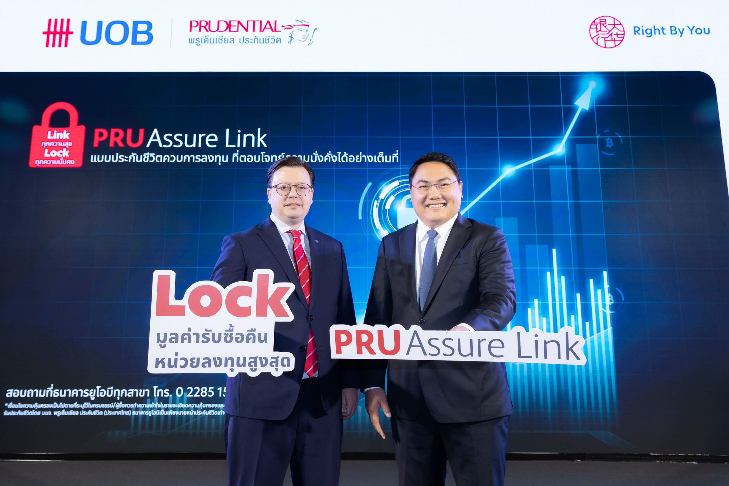 ธนาคารยูโอบี ประเทศไทย และ พรูเด็นเชียล ประเทศไทย พันธมิตรธุรกิจด้านแบงก์แอสชัวรันส์ระดับภูมิภาคอาเซียนของธนาคาร เมื่อเร็วๆนี้ เปิดตัว PRUAssure Link แผนประกันชีวิตควบการลงทุนแรกในประเทศไทย ที่มอบความคุ้มครองโดยคำนวณจากมูลค่ารับซื้อคืนหน่วยลงทุนสูงสุดตลอดอายุสัญญา เพื่อปกป้องและเพิ่มพูนความมั่งคั่งให้แก่ลูกค้า