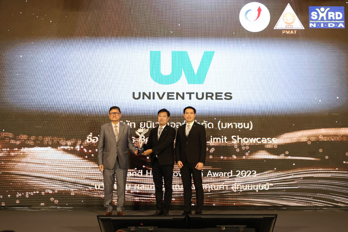 กำพล ปุญโสณี (ที่ 2 จากซ้าย) กรรมการผู้จัดการใหญ่ พร้อมด้วย วุฒิชัย เจริญพงษ์สุข (ขวา) ผู้อำนวยการสายงานทรัพยากรบุคคล บริษัท ยูนิเวนเจอร์ จำกัด (มหาชน) รับรางวัล “นวัตกรรมการบริหารและพัฒนาทรัพยากรมนุษย์ ประจำปี 2566” (Thailand HR Innovation Award 2023) ระดับ Silver Award โดยเป็นความสำเร็จของโครงการ “Beyond Your Limit Showcase” จาก ดร.เอนก เหล่าธรรมทัศน์ (ซ้าย) อดีตรัฐมนตรีว่าการกระทรวงการอุดมศึกษา วิทยาศาสตร์ วิจัยและนวัตกรรม ในงาน Thailand HR Day 2023 ซึ่งจัดโดยสมาคมการจัดการงานบุคคลแห่งประเทศไทย(PMAT) เมื่อเร็วๆ นี้ ณ โรงแรมเซ็นทารา แกรนด์แอท เซ็นทรัล พลาซา ลาดพร้าว