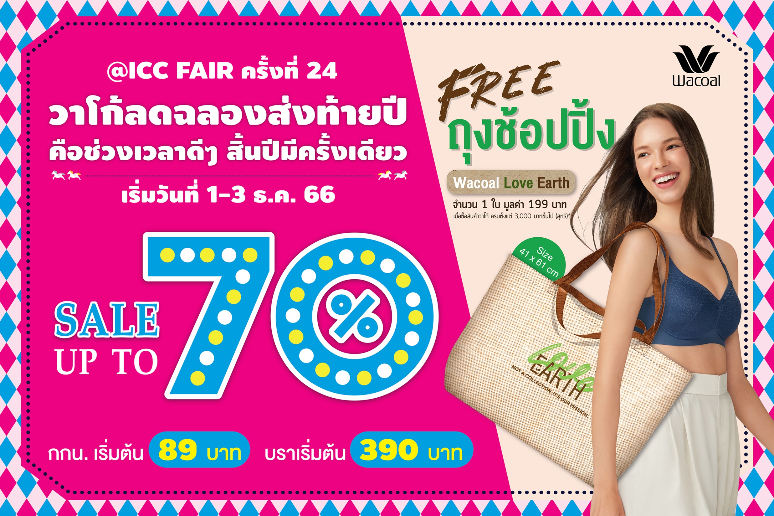 และเมื่อซื้อสินค้าวาโก้ครบ 3,000 บาทขึ้นไป (ต่อใบเสร็จ) รับฟรี!! ถุงช้อปปิ้ง Wacoal Love Earth มูลค่า 199 บาท จำนวน 1 ใบ พบกันที่บูธ Wacoal ในงาน ICC Fair 2023 ระหว่างวันที่ 1-3 ธันวาคม 2566 ตั้งแต่เวลา 08.00 น. – 20.00 น. ณ บมจ.ไอซีซี ซอยสาธุประดิษฐ์ 58 (ถ.พระราม 3 ซอย 29) เพียง 3 วันเท่านั้น รีบมาช้อปชุดชั้นในของใหม่คุณภาพดี เพื่อเสริมดวงให้เฮงให้ปัง รับต้นปี สินค้ามีจำนวนจำกัด!! หมดเเล้ว…หมดเลย สอบถามเพิ่มเติมโทร. 02-296-9979 *เงื่อนไขเป็นไปตามที่บริษัทฯ กำหนด