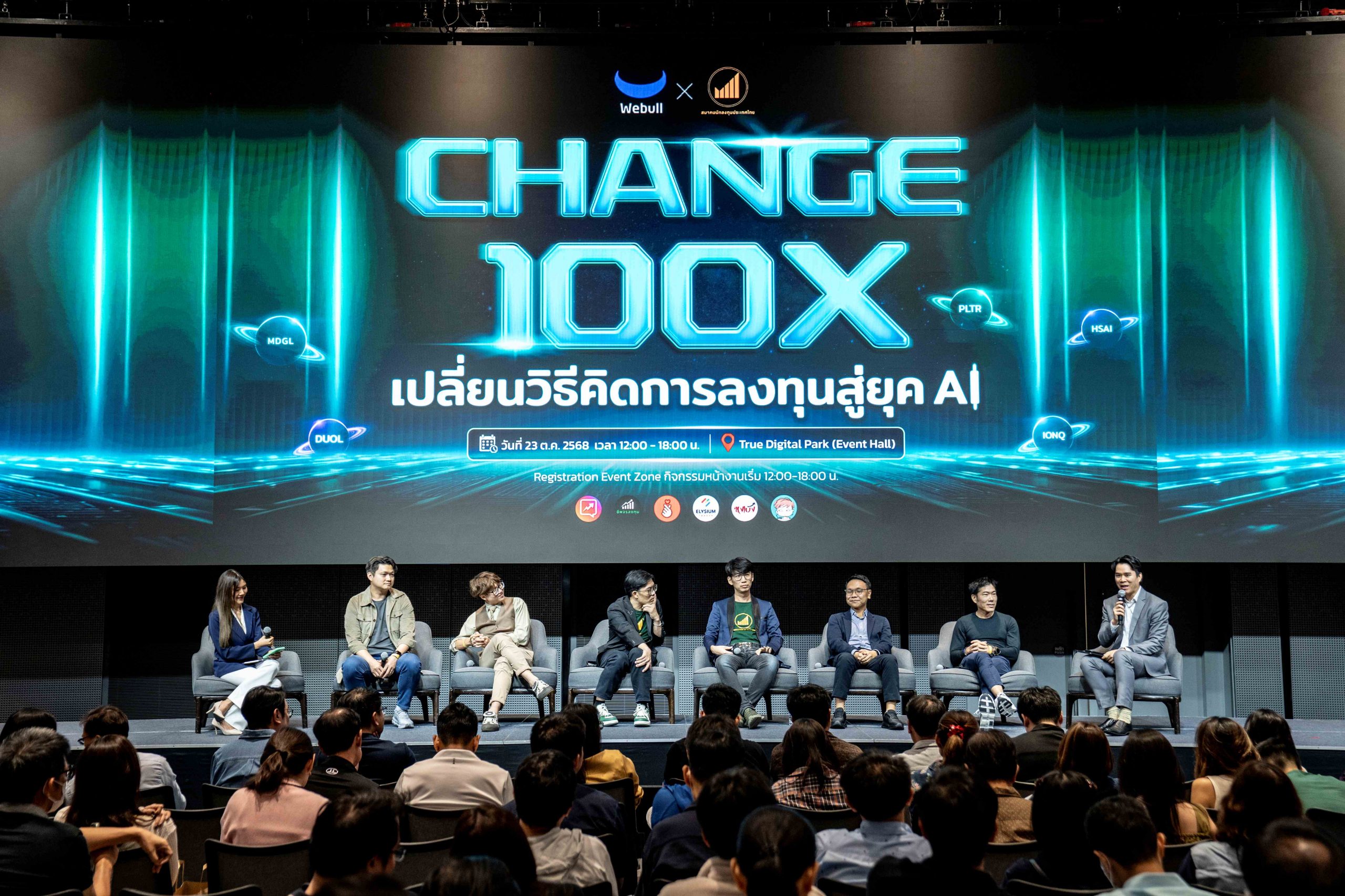 บริษัทหลักทรัพย์ วีบูลล์ (ประเทศไทย) จำกัด หรือ “Webull Thailand” ร่วมกับสมาคมนักลงทุนประเทศไทย และ Elysium Trader จัดงานสัมมนาการลงทุนภายใต้ชื่องาน “CHANGE 100X: เปลี่ยนวิธีคิดการลงทุน สู่ยุค AI” ผู้เชี่ยวชาญในวงการด้านการเงิน การลงทุนมาให้ความรู้แบบจัดเต็ม เพื่อเปิดโอกาสให้นักลงทุนไทยได้เรียนรู้มุมมองใหม่ ๆ และเตรียมความพร้อมสู่การลงทุนในตลาดโลก รวมทั้งสามารถบริหารจัดการพอร์ตลงทุนได้อย่างรัดกุมและมีประสิทธิภาพระดับ 100X