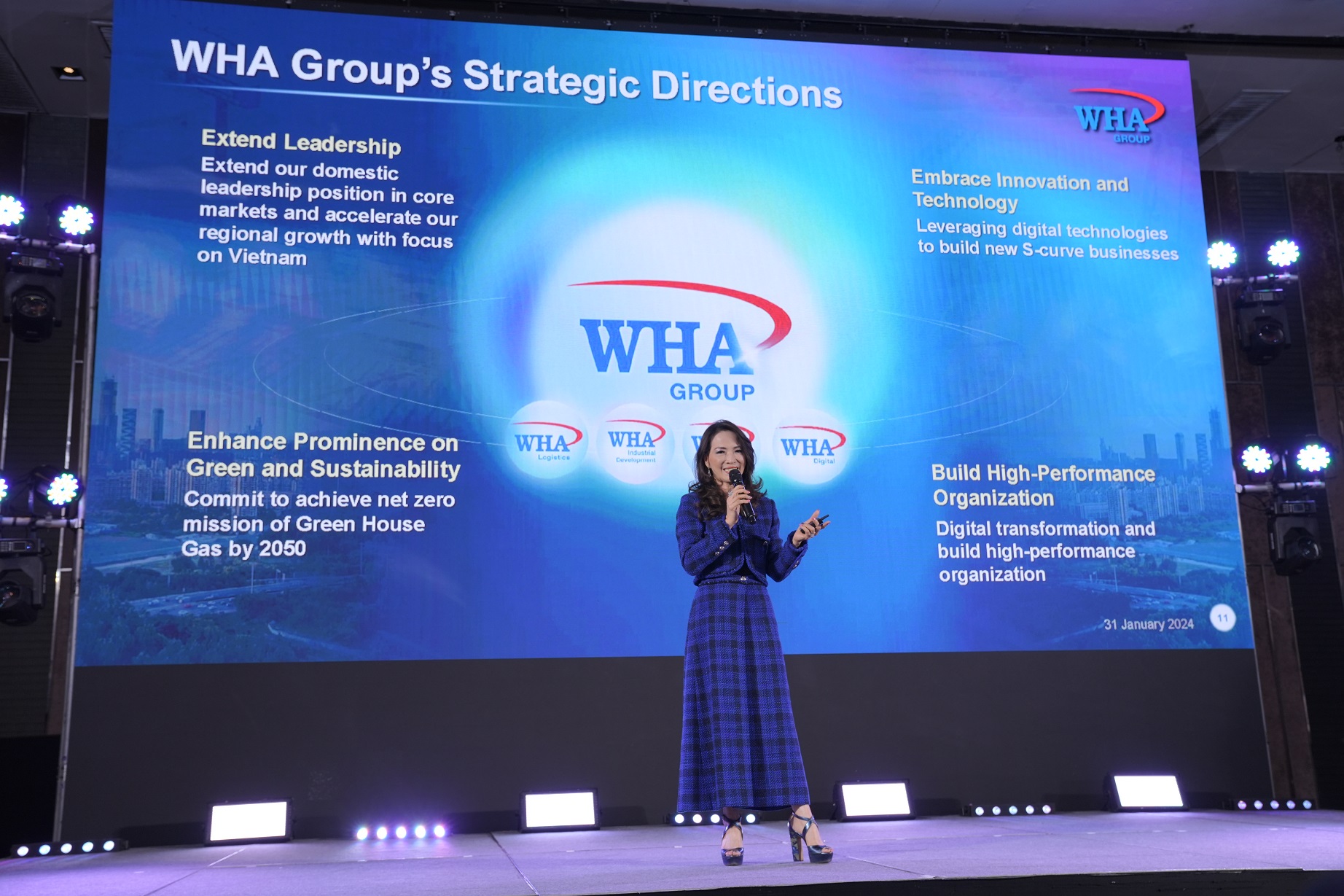 นางสาวจรีพร จารุกรสกุล ประธานคณะกรรมการบริหารและประธานเจ้าหน้าที่บริหารกลุ่ม บริษัท ดับบลิวเอชเอ คอร์ปอเรชั่น จำกัด (มหาชน) (“WHA Group”) กล่าวว่า “ในปี 2567 นี้ เรายังคงเดินหน้าพัฒนาโซลูชันทางธุรกิจและอุตสาหกรรมเพื่อเสริมขีดความสามารถในการแข่งขันของประเทศ ดึงดูดการลงทุนใหม่ ๆ และร่วมสร้างอนาคตที่ยั่งยืนให้ประเทศไทย โดยมีภารกิจสำคัญคือการบรรลุเป้าหมายที่จะเป็น Technology Company อย่างเต็มตัว ด้วยกลยุทธ์ AI Transformation มุ่งสร้างวัฒนธรรมองค์กรที่พร้อมรับการเปลี่ยนแปลงด้านดิจิทัล ยกระดับการดำเนินงานด้วยข้อมูลและปัญญาประดิษฐ์ เพื่อคงความเป็นผู้นำในสภาพแวดล้อมทางธุรกิจที่เปลี่ยนแปลงอย่างรวดเร็ว และต่อยอดโครงการ Digital Transformation ที่มีอยู่กว่า 38 โครงการ