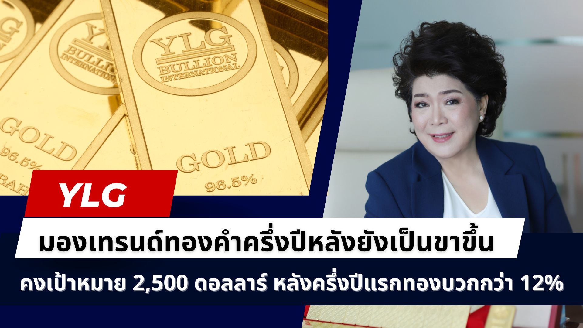 นางพวรรณ์ นววัฒนทรัพย์ ประธานเจ้าหน้าที่บริหาร บริษัท วายแอลจี บูลเลี่ยน อินเตอร์เนชั่นแนล จำกัด (YLG) กล่าวว่าราคาทองคำในครึ่งปีแรกนับจากต้นปีถึงวันที่ 27 มิถุนายน 2567 ณ เวลา 12.00 น. ปรับตัวขึ้นมาแล้ว 11.5% YTD ส่วนราคาทองคำแท่ง96.5% ในประเทศ ปรับตัวขึ้นมามากถึง 19.6% YTD โดยราคาทองคำต่างประเทศได้ทำจุดสูงสุดที่ 2,450 ดอลลาร์สหรัฐต่อทรอยออนซ์ อย่างไรก็ดีแม้ว่าในเดือน มิ.ย. จะเริ่มแกว่งตัวปรับฐานลงมาบ้าง แต่ยังถือว่าเคลื่อนไหวอยู่ในระดับราคาที่ค่อนข้างสูงและคาดครึ่งปีหลัง แนวโน้มการเคลื่อนไหวของราคาทองคำจะยังคงรักษาทิศทางการเคลื่อนไหวในแดนบวกได้ต่อเนื่อง โดยมาจากปัจจัยบวกดังนี้